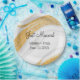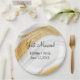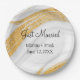 Beautiful white and gold agate bands abstract photo with the words Just Married and the names of the newly-wed couple and their wedding date.