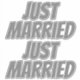 2 x JUST MARRIED XL Car Stickers - Font #2 Bangers - a bold and playful italic uppercase font - STEEL GREY #797979 COLOR TEXT. 14" x 14" XL Extra Large Kiss Cut Stickers - with MATTE WHITE 0.125" BORDER & FILL (for adding contrast to edge of darker designs and for use on darker backgrounds).