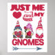 Just me and my Gnomes, this cute design features three gnomes in red white and blue with text saying "Just me and my Gnomes".