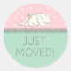Just Moved! Pink and Green Bunny with Flowers Classic Round Sticker