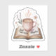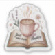 This “Just One More Chapter” sticker features a soft, cozy illustration of a steaming coffee mug resting on an open book, surrounded by gentle floral elements. Perfect for readers, coffee lovers, and anyone who enjoys calm, aesthetic vibes.