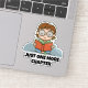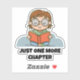 Cute sticker, ideal for book lovers and bookworms. A cute child sate crossed legged reading a book. Below are the words 'Just One More Chapter' in a chunky black text. This is a template you can use as it is or replace with your own text.