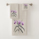 Purple Arundina botanical orchid engravings paired with an antique watercolor butterfly on a creamy tan stripe background bath towel set. These towels are scrumptious ( I ordered the Orchids with Butterfly version for myself ) and look so elegant with tan and taupe tile. There is an equally scrumptious matching shower curtain made with Just Orchids as well.