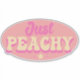 Cute pink and peach coloured sticker with the words Just Peachy.