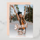 A graduation announcement with a custom photo and rose gold foil printed retro style typography is a unique and stylish way to announce your graduation to your friends and family. The custom photo is a special touch that adds a personal and sentimental element to the design, while the rose gold foil printing adds a touch of glamour and sophistication.