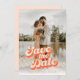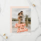 A wedding save the date with a custom photo and peach colored retro style typography is a unique and stylish way to announce your upcoming nuptials to your friends and family. The custom photo is a special touch that adds a personal and sentimental element to the design, while the peach vintage style font adds a touch of retro and whimsy. This design is sure to impress and get everyone excited for your big day.