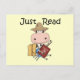 Just Read T-shirts, hoodies, mugs, cards, stickers, buttons, magnets, mousepads, journals, keepsakes, and other reading theme apparel and gifts that promote reading in a cute way! A cow with a straw hat and pitchfork rests against a hay bale with a book!