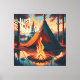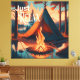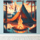 Ai digital artwork. Just relax quote. Vintage colours blue and brown. A tent in the woods with a burning campfire.