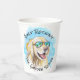 Funny retirement paper cups with a cool golden retriever on a tropical beach. Original design created from one of our hand painted watercolors.