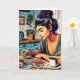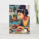 A cute card to send to a friend or family member. Just wondering how you are, let's catch up greeting card. Ai illustration of a woman doing a puzzle on her kitchen table.