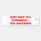JUST WAIT TILL NOVEMBER...YOU BASTARDS BUMPER STICKER