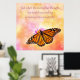 Just when the caterpillar thought the world was ending, he turned into a butterfly - Monarch butterfly on pink zinnia with a dreamy yellow and pink background, with the quote