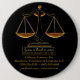 A great Law Firm marketing tool and/or Name Tag for the next Company Retreat is this pin-on button w/ original digital painting of golden scales on black gloss background Benjamin Disraeli's iconic quote, "Truth is Justice in Action". Choice of size & shape. No need to have same name on all to qualify for Volume Discounts.