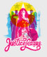 Check out the Justice League outlines in a retro, CMYK, lithograph inspired design, with the Trinity (Wonder Woman, Batman, and Superman) in front and in higher detail. The Justice League name logo is written below in a fun, curly retro style font.