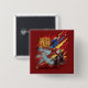 This high tech badge features Justice League's Superman, The Flash, and Batman rushing off to the right with a golden Justice League logo in the upper left. Red and gold futuristic panels are placed behind and around our heroes, while The Flash is forefront running at an incredible speed that generates electricity around his body.