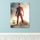 Check out Justice League's The Flash standing on a mist filled, rocky terrain. The sun dawns above the horizon, causing the mist and clouds to glow bright.