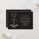An elegant graduation announcement/invitation all in black with a silver wreath and justice scale. The wreath can enclosed initials, monogram or a date. Make an impression with this sophisticated invitation. Want to save money? Print this invitation on basic square corner paper.