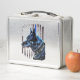This is a standard metal lunchbox that appears to work just fine. We designed this box ourselves with an uploaded photo and custom text on the front and back. It looks absolutely beautiful except the front of the lunchbox is not centered like it shows in the photo. The print borders don't align with the inset flat part of the box where the preview photo online showed it perfectly centered in there. The back looks nice and centered though.