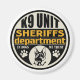 Black K9 logo with large K9 Unit Sheriffs Department text. Lower 'In Dogs We Trust' and two dog paw shapes next to a K9 German Shepard dog head. Off white, gold and black colours, great K9 Unit gift for handlers, sheriff departments and supporters!