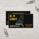 Perfect for all police officer's, and law enforcement departments who have a K9 Unit. Front - personalise with police K9 name, Back- Personalise with name, department, address and contact info . COPYRIGHT © 2020 Judy Burrows, Black Dog Art - All Rights Reserved.K9 Unit Thin Blue Line Law Enforcement Police Dog Business Card