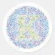 Part of my English alphabet collection of eye test designs. The Letter K cunningly hid inside an Ishihara inspired design.