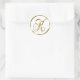 K Monogram Faux Gold Envelope Or Favour Seal. These classic round stickers are printed with non metallic ink on a flat sticker to look like gold. They are not beveled or embossed monograms but are designed to look like they are beveled or embossed monograms. These gold monogram seals are printed on a white background unless you select a different colour background before you proceed to checkout. In addition to being pretty wedding stationery supplies, these elegant wedding invitation envelope seals also make great monogrammed custom Christmas card seals, personalised holiday greeting card envelope seal stickers and customised Xmas card monogram seal stickers.