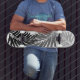 Black and grey. Kahanu Garden is located on the Hana Coast of Maui and hosts the largest native flora forests in the islands. Our design is oversized hand drawn palm leaves making up this bold graphic statement. The designs drops out to the natural maple of the board. This design comes in several colour ways.