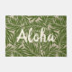 Olive Green Colorway. The message of Aloha welcomes your visitors to your own tropical paradise. Kahanu Garden is located on the Hana Coast of Maui and hosts the largest native flora forests in the islands. Our design is oversized hand drawn palm leaves making up this bold graphic statement on a faux linen texture. This design comes in several colorways.