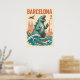 Kaiju Invasion Barcelona – Vintage Sci-Fi Art Poster