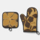 Kailua Hibiscus Hawaiian Floral Gold Brown Oven Mitt & Pot Holder Set