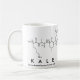 Kale spelled out in amino acids as K A L E (Lysine Alanine Leucine Glutamic acid) on a mug for the scientist in you.