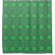This mostly green shower curtain has a decorative designs of Christmas trees kaleidoscope style. The designs are made of red, white, and blue and they form a circular pattern.