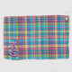 This colourful, vibrant blue, purple, green, turquoise, green, yellow, pink, black, and white plaid will look amazing on the golf course on your personalised golf gear and golfing accessories.