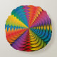 A very eye-catching cushion featuring a beautiful mesmerizing kaleidoscope petal pattern with a 3D effect in iridescent shades of orange, red, blue, green, purple and yellow.