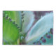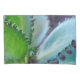 The original photograph by ZoeSPEAK on this Pillowcase Set is a semi-abstract closeup of a kalanchoe plant. The photo shows the leaves in different lighting, causing their normally bluish green colour to appear yellow green and aqua blue. The sculptural new growth on the edges of the leaves, looking like jewellery on each leaf, appears dark green and deep teal blue.