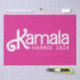 A political campaign poster features the bold white text "Kamala Harris 2024" against a solid grey background. The design is minimalist, focusing on the name and election year. Are you in Kamala's Hive? Show off your political inspiration and humour on swag including: Kamala Harris TEXT