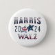 Democrat button in support of Kamala Harris and Tim Walz for president and vice president in 2024 US presidential election.