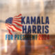 Kamala Harris for President 2024 Election window cling with waving American flag. Cute red, white, and blue design for a patriotic democrat voting in the presidential election.
