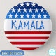 Kamala Harris Supporter Volunteer Fans Custom Text button. For a Kamala Harris presidential campaign supporter design, a bold and empowering layout that combines typography and patriotic symbols to create a striking visual statement. At the centre of the design, feature Kamala Harris's name in large, elegant typography. Use a modern font to convey a sense of forward-thinking and progress. To enhance the design's visual appeal, add a subtle, polished finish with a shadow effect, giving the typography a sense of depth and dimension. This approach not only highlights Kamala Harris’s name but also ensures the flag’s colours and patterns stand out vibrantly. This product aims to celebrate Kamala Harris’s candidacy with a strong, patriotic flair, using typography and the U.S. flag to create a powerful, supportive statement for her presidential campaign.