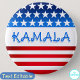 Kamala Harris Supporter Volunteers Democrats SWAG button. For a Kamala Harris presidential campaign supporter design, a bold and empowering layout that combines typography and patriotic symbols to create a striking visual statement. At the centre of the design, feature Kamala Harris's name in large, elegant typography. Use a modern font to convey a sense of forward-thinking and progress. To enhance the design's visual appeal, add a subtle, polished finish with a shadow effect, giving the typography a sense of depth and dimension. This approach not only highlights Kamala Harris’s name but also ensures the flag’s colours and patterns stand out vibrantly. This product aims to celebrate Kamala Harris’s candidacy with a strong, patriotic flair, using typography and the U.S. flag to create a powerful, supportive statement for her presidential campaign.
