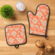 Kamaole Hawaiian Protea Tropical Floral Papaya Oven Mitt & Pot Holder Set