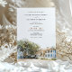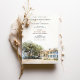 Announce your wedding with Southern elegance using this beautiful invitation suite, featuring a charming watercolor illustration of the historic Kaminski House Museum in Georgetown, South Carolina. The front of the invitation presents a picturesque view of the stately white house, framed by lush green trees, and a hint of a red-brick gatehouse. The scene is rendered in a soft, artistic watercolor style, evoking a sense of Southern grace, tradition, and romance.