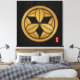 This is the family crest ( kamon ) of the SATO family . You may transfer this design to other products. Gold and wood print design.
