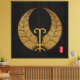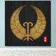 This is the family crest ( kamon ) of the Hashimoto family . You may transfer this design to other products. Gold and wood print design.