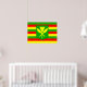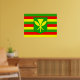 Kanaka Maoli, thought to be the original flag of the Kingdom of Hawaii. 8 stripes that represent the 8 islands of Hawaii. The centre is a green shield, the coat of arms of Kanaka Maoli with the kahili, the royal Hawaiian standard.
