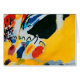This abstract painting is by Wassily Kandinsky, Impression III Concert, 1911. It's an abstract impression of a night at a piano concert, with shapes of the black piano at the top, and the crowd seated at the bottom.