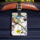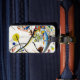 Kandinsky Blue Segment luggage tag. Oil on canvas from 1921. Russian painter Wassily Kandinsky was renowned for his gorgeous use of shape, colour, and space. Blue segment is one of the artist’s most fascinating non-composition works. The painting features blues, yellows and oranges sprawling out roughly like his early cityscape paintings on a white background with hard black outlines. A pretty gift for fans of Kandinsky, abstract painting, and abstract art.