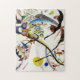 Kandinsky Blue Segment puzzle. Oil on canvas from 1921. Russian painter Wassily Kandinsky was renowned for his gorgeous use of shape, colour, and space. Blue segment is one of the artist’s most fascinating non-composition works. The painting features blues, yellows and oranges sprawling out roughly like his early cityscape paintings on a white background with hard black outlines. A pretty gift for fans of Kandinsky, abstract painting, and abstract art.