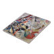 Kandinsky In Grey tile. Oil on canvas from 1919. Russian artist Wassily Kandinsky painted some of the most vibrant works of the abstract movement. In grey is a more reserved though nevertheless striking painting by this great artist. The work features swirling organic reds, blues greens and blacks over a soft grey background. The study is a lovely expression of the artist’s belief that all colours contained beauty and possibility. A great gift for fans of Wassily Kandinsky, abstract painting, and Russian art.