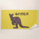 Beach towel features kangaroo silhouette in aboriginal mosaic pattern with "Australia" in grunge style text